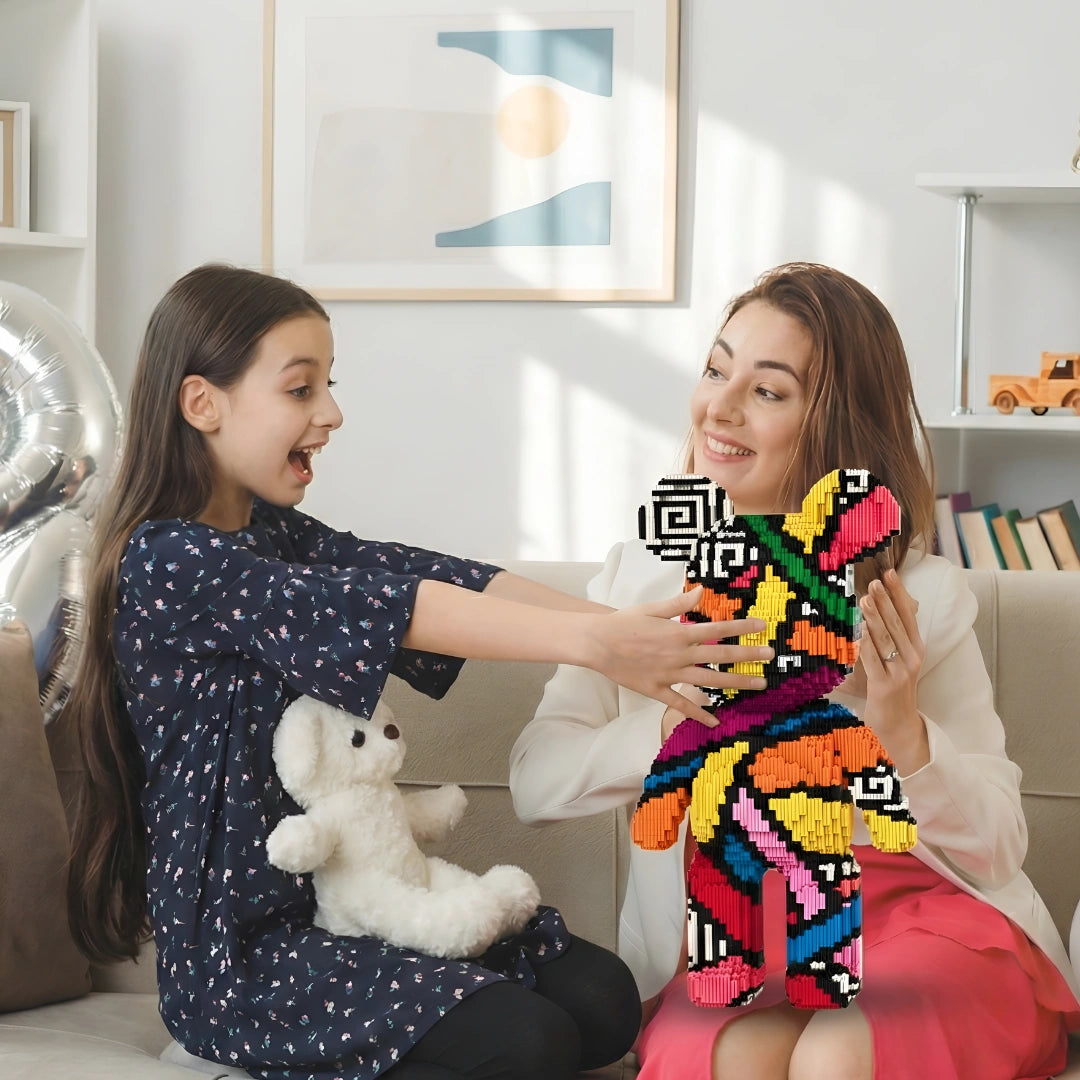 Une fois bien assemblé, le nounours est très solide grâce à la qualité des briques qui s’emboîtent parfaitement, idéal pour la déco.